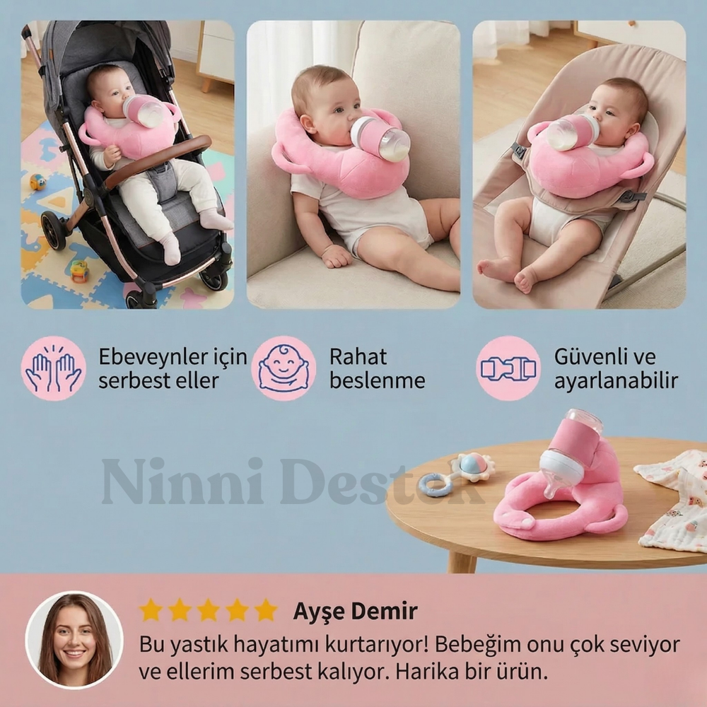 Evet, en büyük amacımız bu! Uzun süre biberon tutmaktan kaynaklanan kol uyuşması ve boyun tutulmalarını tamamen ortadan kaldırır. Siz arkanıza yaslanıp dinlenirken, bu ergonomik destek sistemi fiziksel yükü üzerinizden alır ve beslenme saatlerini yorucu bir işten keyifli bir bağ kurma anına dönüştürür.
